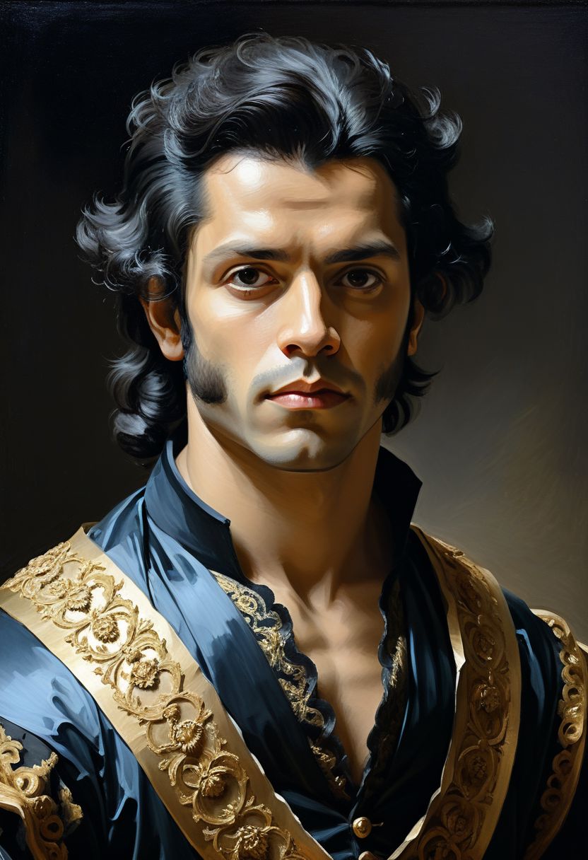 (by goya:1.8), (male:1.6), masculine, (ephemeral , masterful:1.4), black hair, painting, detailed, award winning, low contrast, depth of field, (intricate details, masterpiece, best quality:1.4), dramatic lighting, dynamic pose <lora:add-detail-xl:0.5> <lora:xl_more_art-full_v1:0.5> <lora:looking_at_viewer:2>