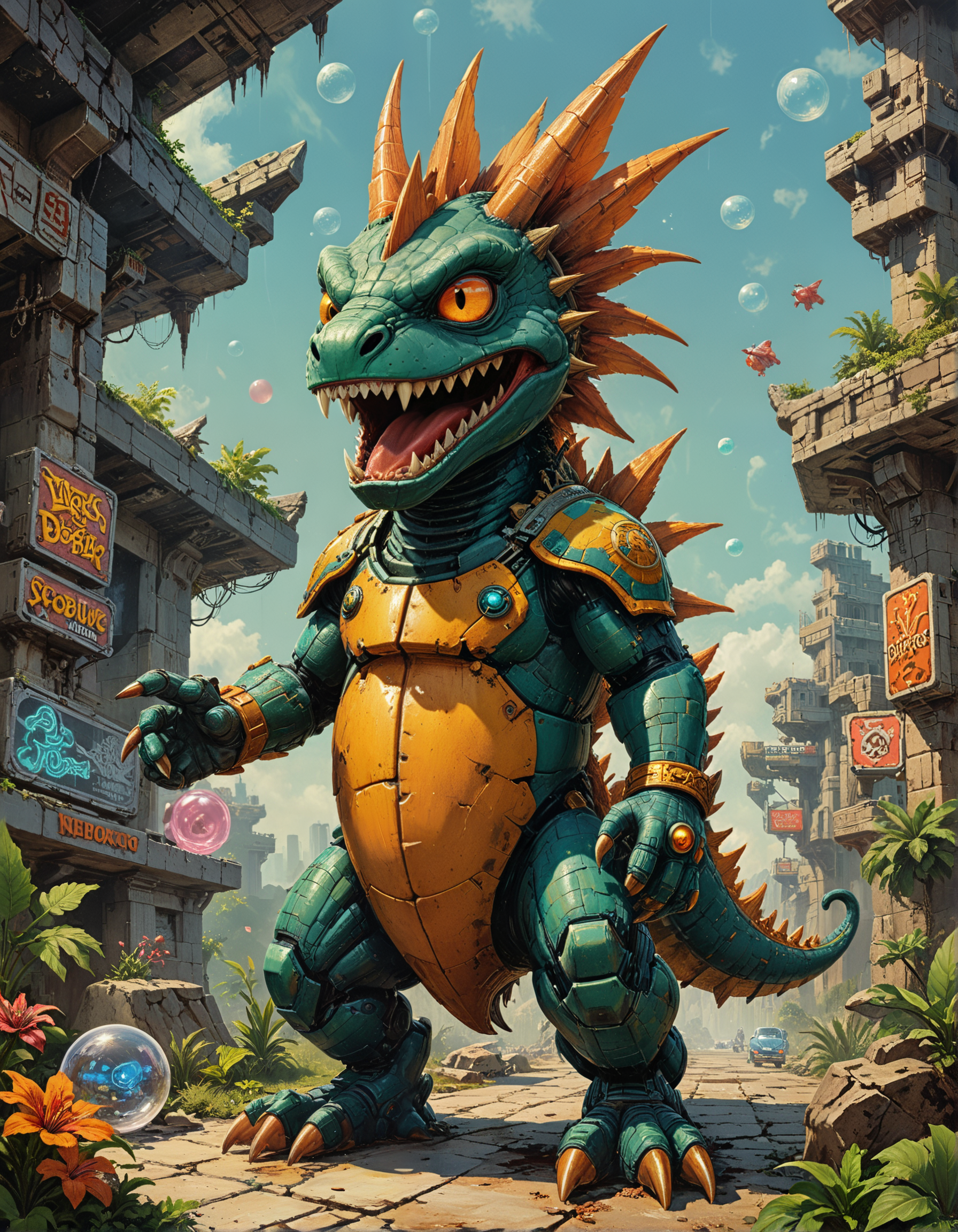 (The Jersey Devil:0.5) ([Mayan Empire, Bubble Bobble style|Retro-futuristism, Googie Art Style]:1.3)