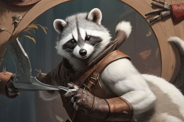 small frame, animal, furry, albino, white, racoon, leather armor, thief, rogue, fighter, chaotic