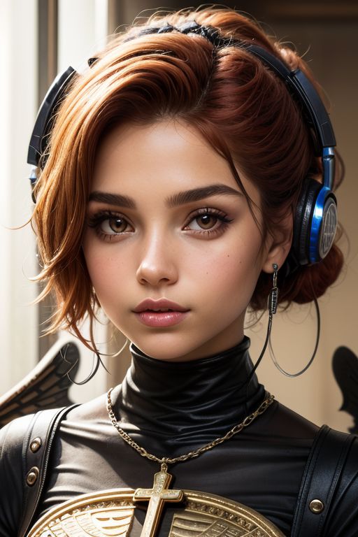, solo, portrait of goodisis, goodnes ornate, egypt, energy, aura, dust, debris, Face looking, tanned skin, women, Ankh Cross, wings, ankh, Black Eyeliner blond cyber punk Jessica Marie Alba beautiful girl red hair full growth