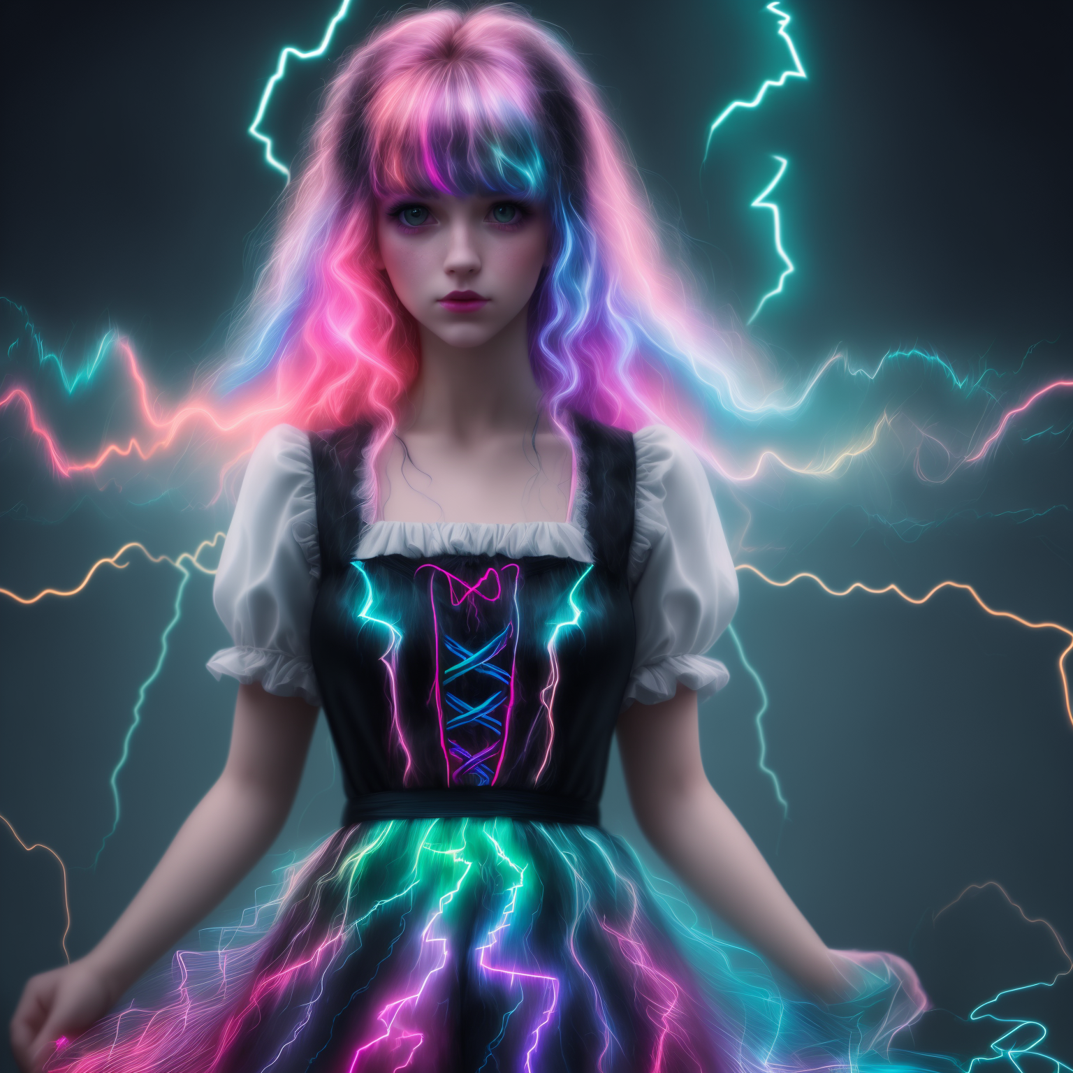 <lora:LightningPunkAIv2:1>LightningPunkAI Colorful beautiful MaeAI, dirndl, Black ink flow,8k resolution photorealistic masterpiece