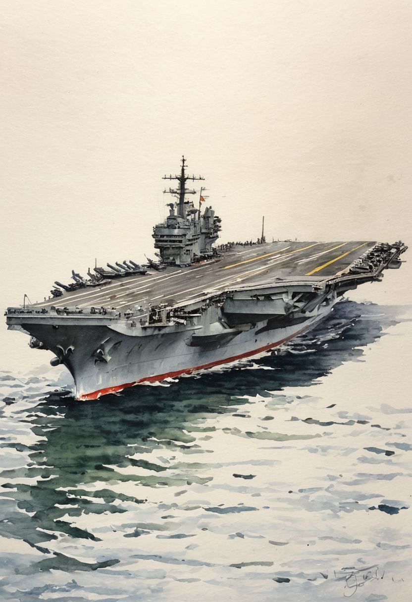 watercolor painting, watercolour painting, of (((Soviet aircraft carrier Baku))), ship at sea,