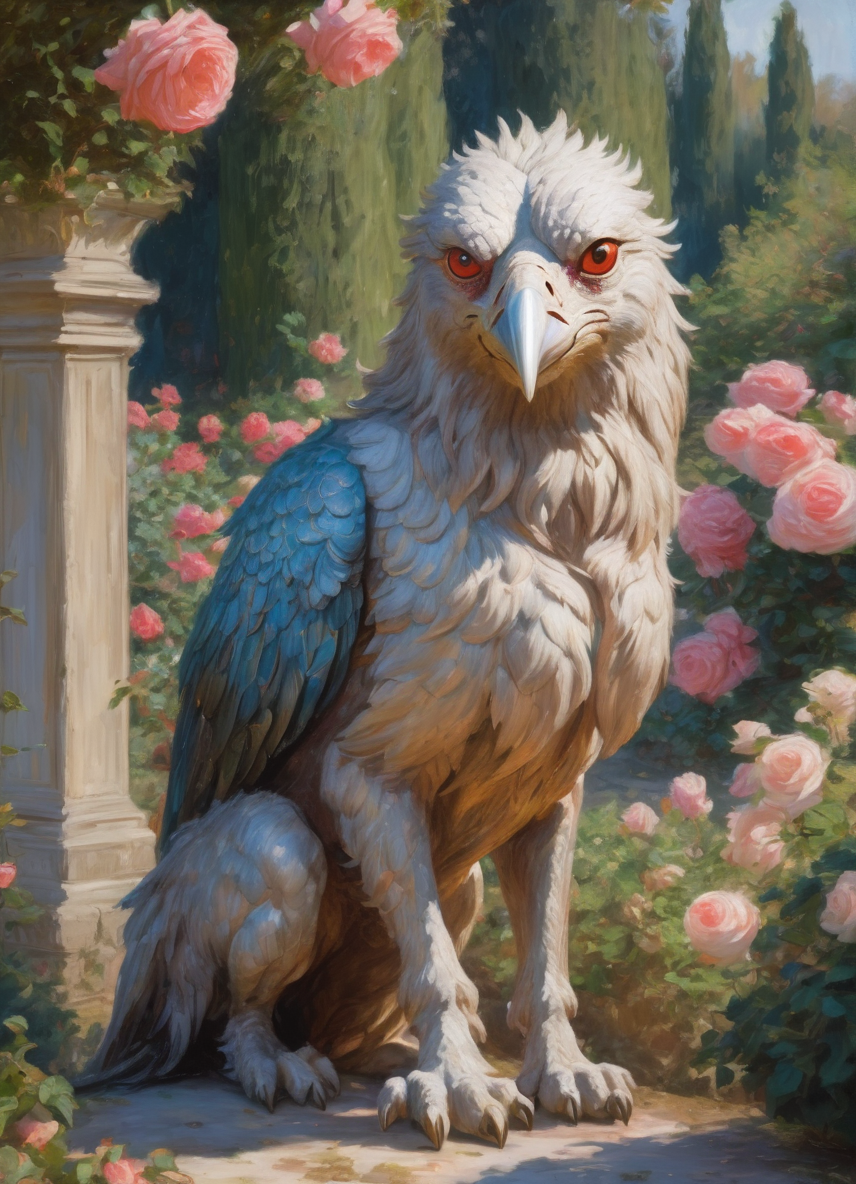 fantasy painting of (griffin) in the garden of eternal roses by monet,portrait