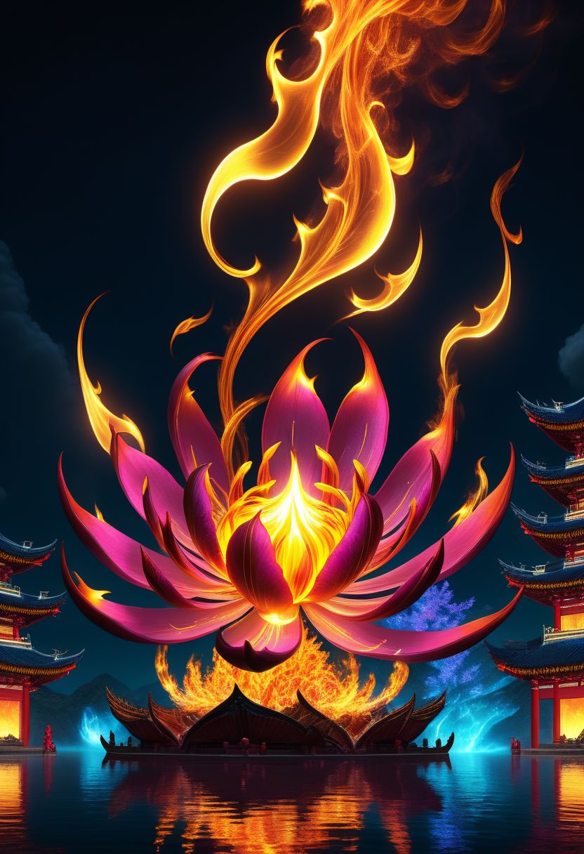 dahuangdongjingAI, magic Fire Flower Fire lighting, neon, NeonHypnoPMV , Best Quality, High Resolution, Realistic, Extremely Detailed, 8k, Clear, Vividly Detailed Masterpiece Art of Image, Artistic Hyper-Detailed Immersive Elemental Fantasies, Huge Realistic, Detailed Tense Scene, Inspired by Busy Celestial Light1.3, cinematic, highly detailed
