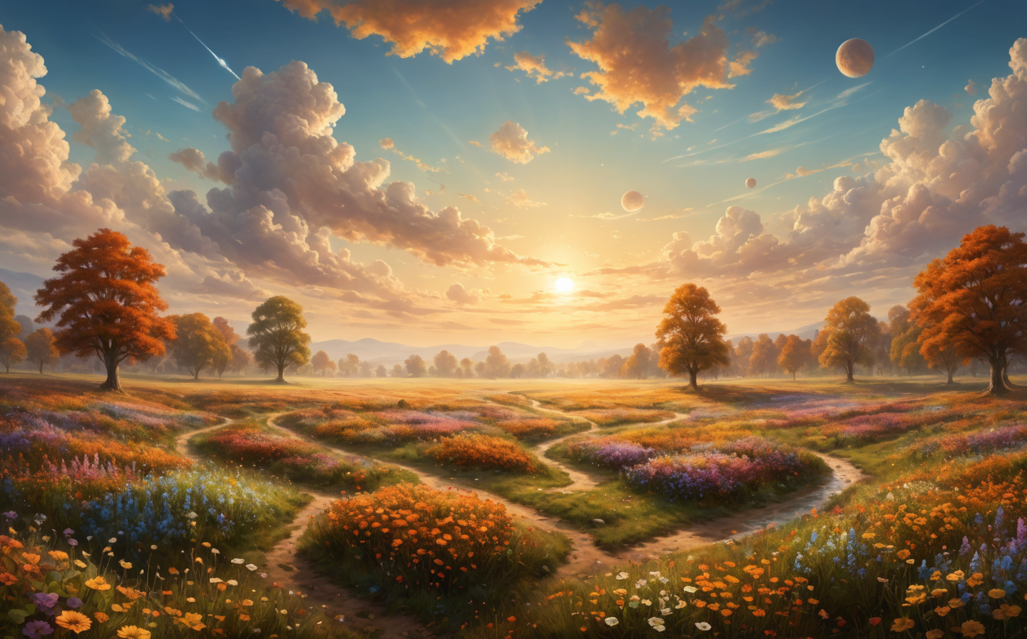ethereal fantasy concept art of masterpiece, top quality, absurdres, award winning, 8k, highly detailed, beautiful landscape of a field of flowers in autumn, at day.<lora:EnvyZoomSliderXL01:-2> <lora:symmetrical:0.5> <lora:add-detail-xl:2>, magnificent, celestial, ethereal, painterly, epic, majestic, magical, fantasy art, cover art, dreamy