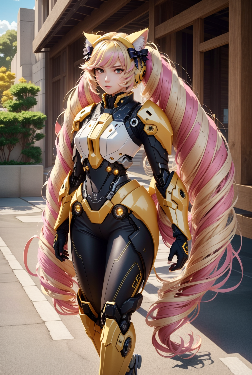 wrenchsmechs,<lora:ÐÐµÑ Ð°(wrenchsmechs,(glowing, ЦÐÐТ mecha, halo, mechanical wings, long hair):0.6>,glowing, ЦÐÐТ mecha, halo, mechanical wings, <lora:ÐоÑка-девоÑка из Ñок ÑоÑ(Himeko, very long hair, red eyes, hair bow, twin_drills, twintails, long hair,cat ears, yellow cat ears,):0.7>, Himeko, very long hair, red eyes, hair bow, twin_drills, twintails, long hair,cat ears, yellow cat ears, (((masterpiece))), (((best quality))), (((illustration))), (((finely detail))), ((extremely detailed cg unity 8k wallpaper, highres)), (beautiful detailed face and eyes and hair:1.1), (an extremely delicate and beautiful girl:1.2), ultra-detailed, ultra high res, high quality, 4K, extreamly delicate and beautiful, full_body, standing, in full growth, hourglass waist