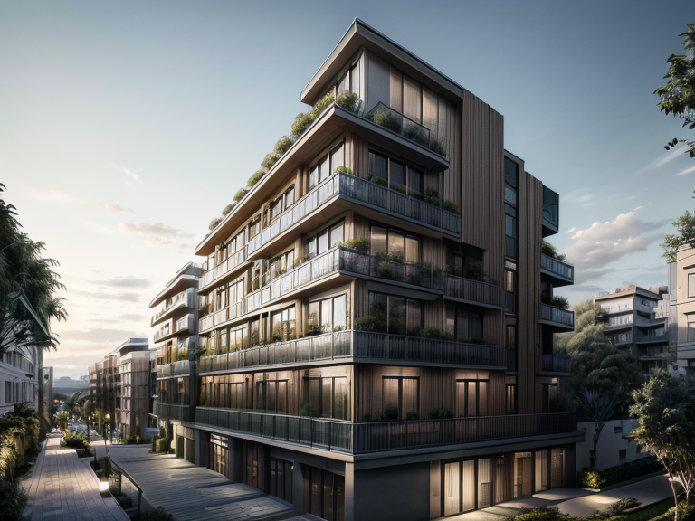modern architecture, multistory, villa, balcony, street view, overhangs, windows, wood, blending with nature, green cover, evening, photo realistic, (masterpiece, best quality, ultra high res:1.2) building, dramatic, <lora:multistory:0.7> <lora:more_details:0.7>