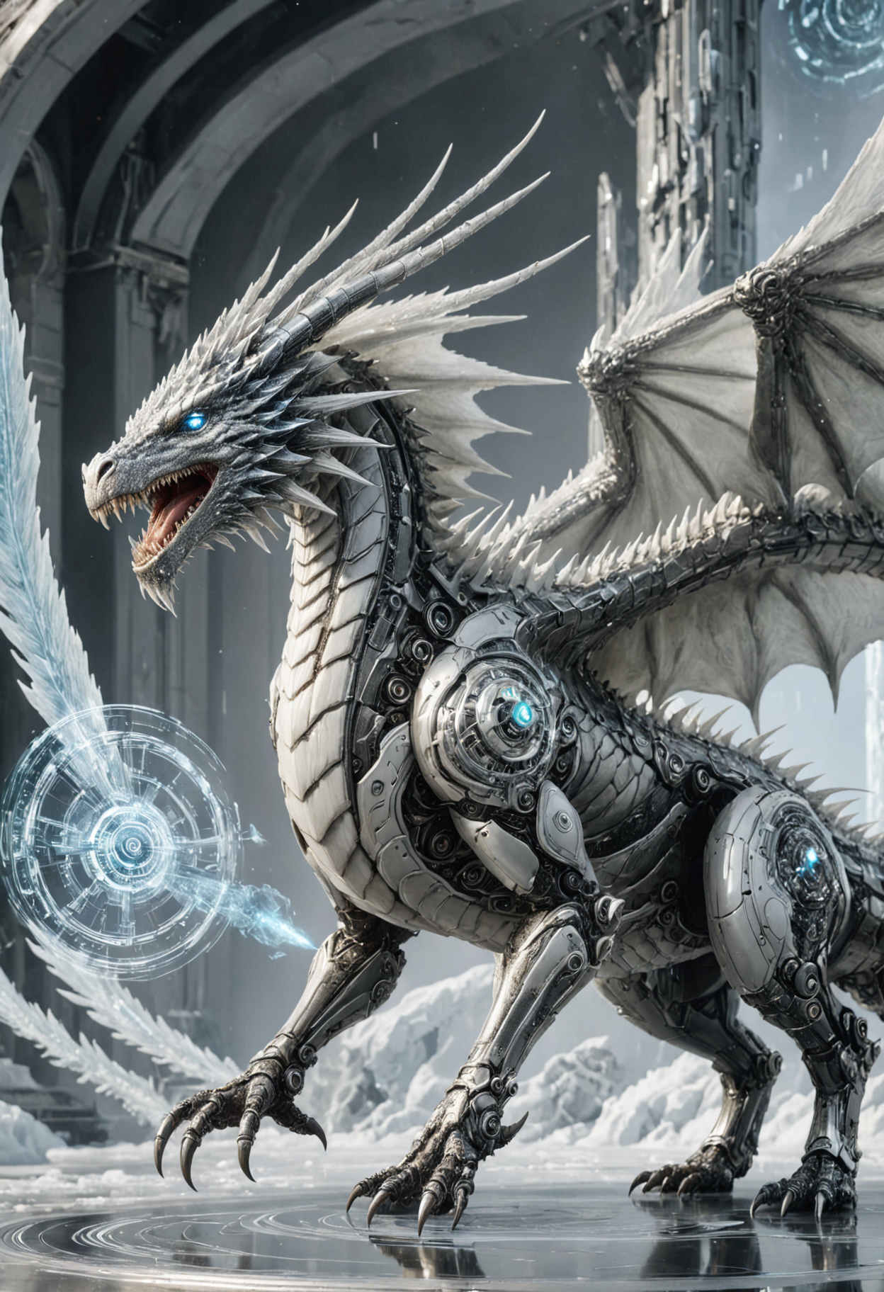 DonM71m37r4v3lXL close up a ethereal polar force wyrm-like Barioth wyvern, claws, multi-headed head, medium spiked legs, , scifi, tech, time trave <lora:DonM71m37r4v3lXL:1>