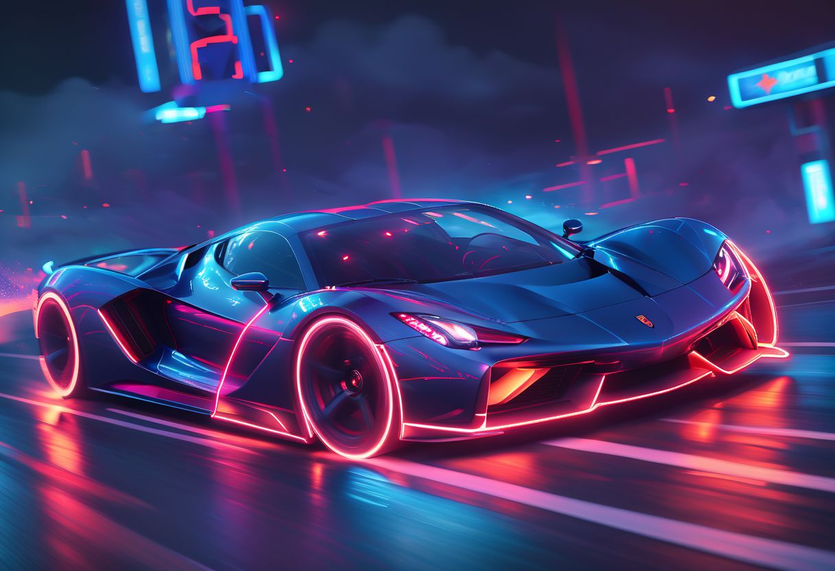 (masterpiece, best quality, ultra-detailed, 8K), race car, street racing-inspired,Drifting inspired, LED, ((Twin headlights)), (((Bright neon color racing stripes))), (Black racing wheels), Wheelspin showing motion, Show car in motion, Burnout, wide body kit, modified car, racing livery, masterpiece, best quality, realistic, ultra highres, (((depth of field))), (full dual colour neon lights:1.2), (hard dual color lighting:1.4), (detailed background), (masterpiece:1.2), (ultra detailed), (best quality), intricate, comprehensive cinematic, magical photography, (gradients), glossy, Night with galaxy sky, Fast action style, fire out of tail pipes, Sideways drifting in to a turn, Neon galaxy metalic paint with race stripes, GTR Nismo, NSX, Porsche, Lamborghini, Ferrari, Bugatti, Ariel Atom, BMW, Audi, Mazda, Toyota supra, Lamborghini Aventador, aesthetic,intricate, realistic,cinematic lighting, Neon Paint, streaks of fire,c_car