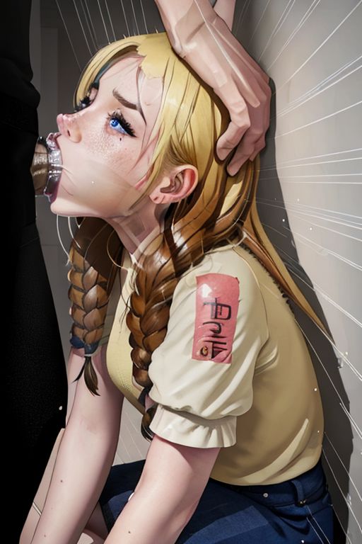 score_9, score_8_up, score_7_up, score_6_up, submisive woman, ultra sexy woman , perfect shape, slim body, skinny, cute girl, pretty girl, innocent girl, heavy breast:1.2, cleavage, torn tight bra, tight short,heavy twin braids, blonde, slim body, cute face, one breast out, freckles, lipstick, black choker, pov man , huge penis , hold her head, Visible penis shape on the girl's cheek shy, embarrassing, girl looking to the side, girl give blowjob, deepthroat, side angle, traditional media, library, ultra close up, fractals tattoos, freckles, blue eyes, ruined makeup, mouth creampie, forced sex, girl stuck in the corner of a wall, hands tied, on her knees,