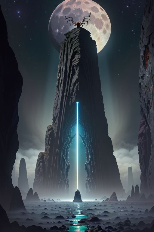 (no humans:1.4), OverallDetail, green theme, moon, path, giant face in the mist, (spider:1,.4), menacing, (spider monolith on the moon, multidimensional object,non-euclidean object,looming ominous face of GOD,demiurgic object:1.4), (epic:1.2), realistic, trending on artstation, 3d, (high quality:1.2), (masterpiece:1.2), high details, incredibly absurdres, colorful), best quality, highres, full body shot,Frank Frazetta,Postmodern Art,Shoujo Anime,Precisionism,Fauvism,Funk Art,Gothic Art,Grimdark Art,