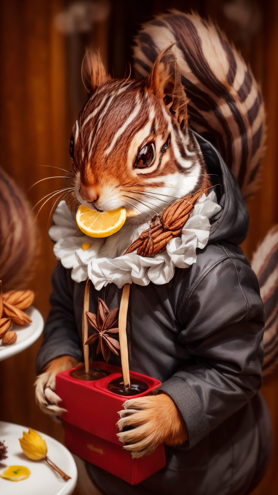 masterpiece, Inspiration: artist nick knight, (((food|a squirrel in the form of squirrel costume))), <lora:add_detail:0.9>, 8k uhd, dslr, soft lighting, high quality, film grain, Fujifilm XT3, sfw, ((flowers,nuts, mulled wine)), (style of Giuseppe Arcimboldo), <lora:add_detail:0.4> <lora:tutu's Vibrant Colors:0.7>