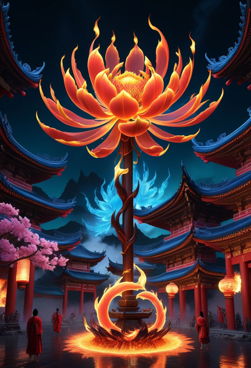 dahuangdongjingAI, magic Fire Flower Fire lighting, neon, NeonHypnoPMV , Best Quality, High Resolution, Realistic, Extremely Detailed, 8k, Clear, Vividly Detailed Masterpiece Art of Image, Artistic Hyper-Detailed Immersive Elemental Fantasies, Huge Realistic, Detailed Tense Scene, Inspired by Busy Celestial Light1.3, cinematic, highly detailed
