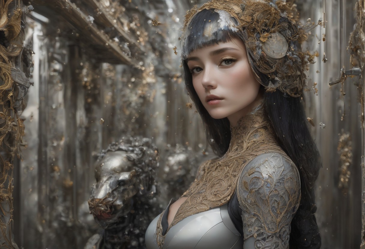 by Serge Birault, (incompatible, High Fashion but extremely beautiful:1.4), (intricate details, masterpiece, best quality:1.4) , in the style of nicola samori, Futuristic style, sleek, modern, ultramodern, high tech, detailed,, looking at viewer, full body image, <lora:epi_noiseoffset2:0.5> <lora:add-detail-xl:1> <lora:xl_more_art-full_v1:0.5> <lora:NicolaSamori:0.7>