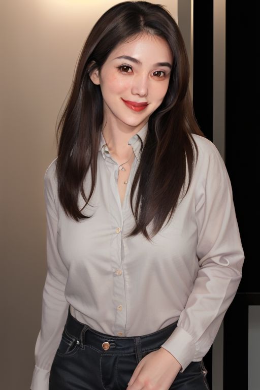 gggw, 1girl, solo, looking at viewer, realistic, lips, brown eyes, brown hair, long black hair, black eyes, smile, mole, standing
