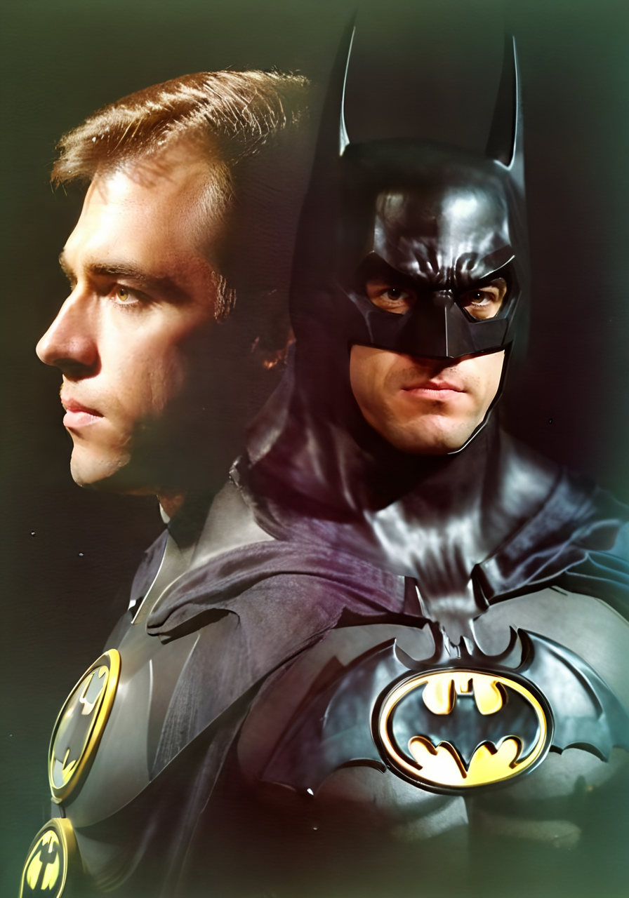 portrait of batman, double exposure effect, a80psdxl, dark background, <lora:a80psdxl:1>