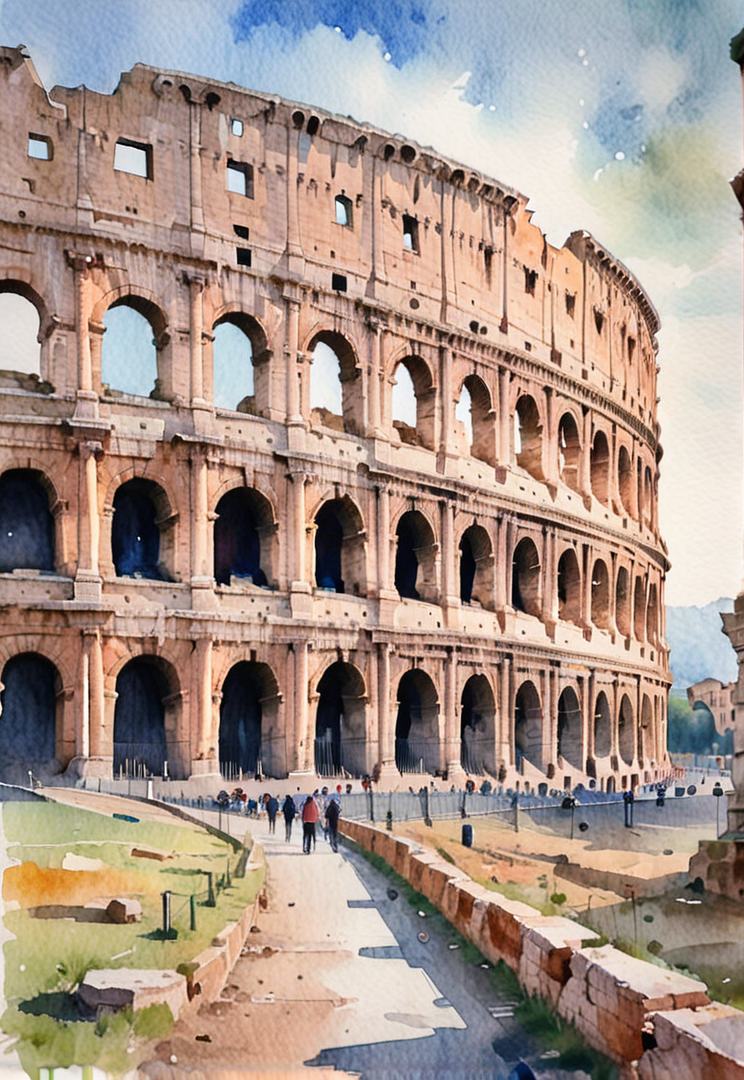 <lora:EldritchWatercolor1.1.1:0.8>,(Colloseum),soft colours,watercolor,
