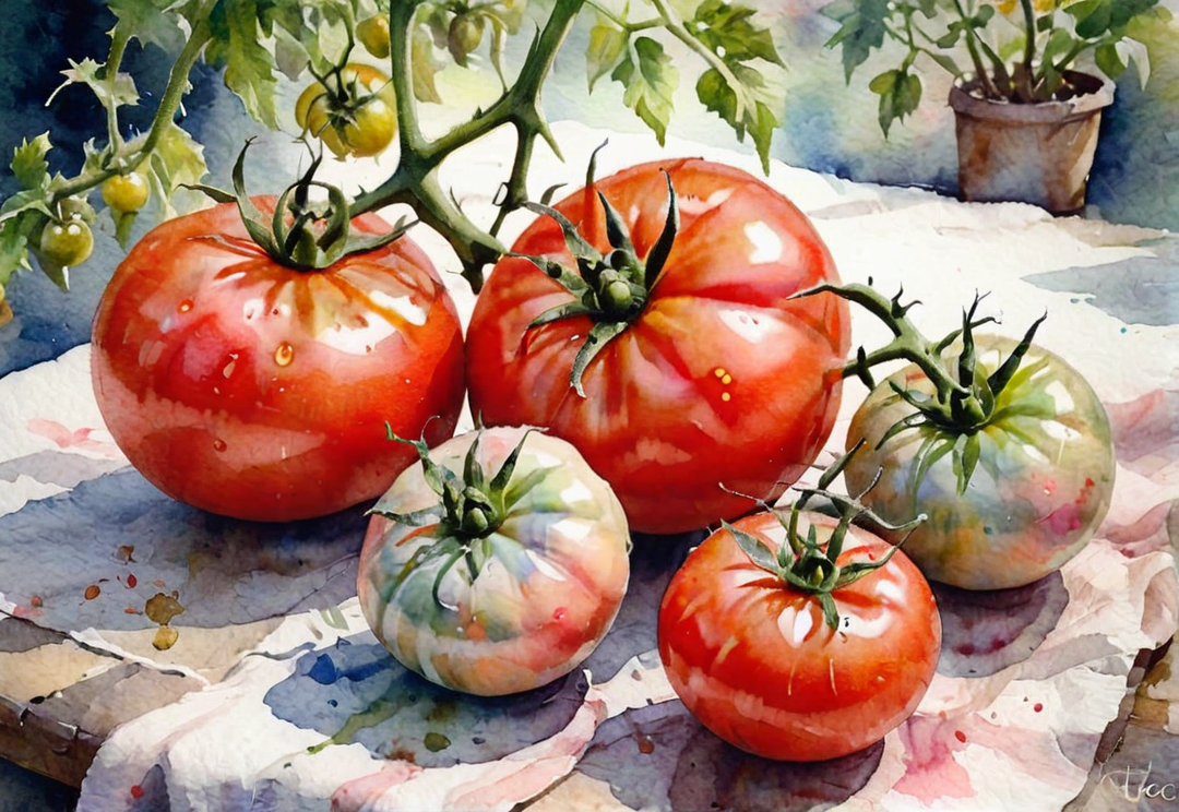 <lora:EldritchWatercolor1.1.1:0.8>,(tomatoes),soft colours,watercolor,