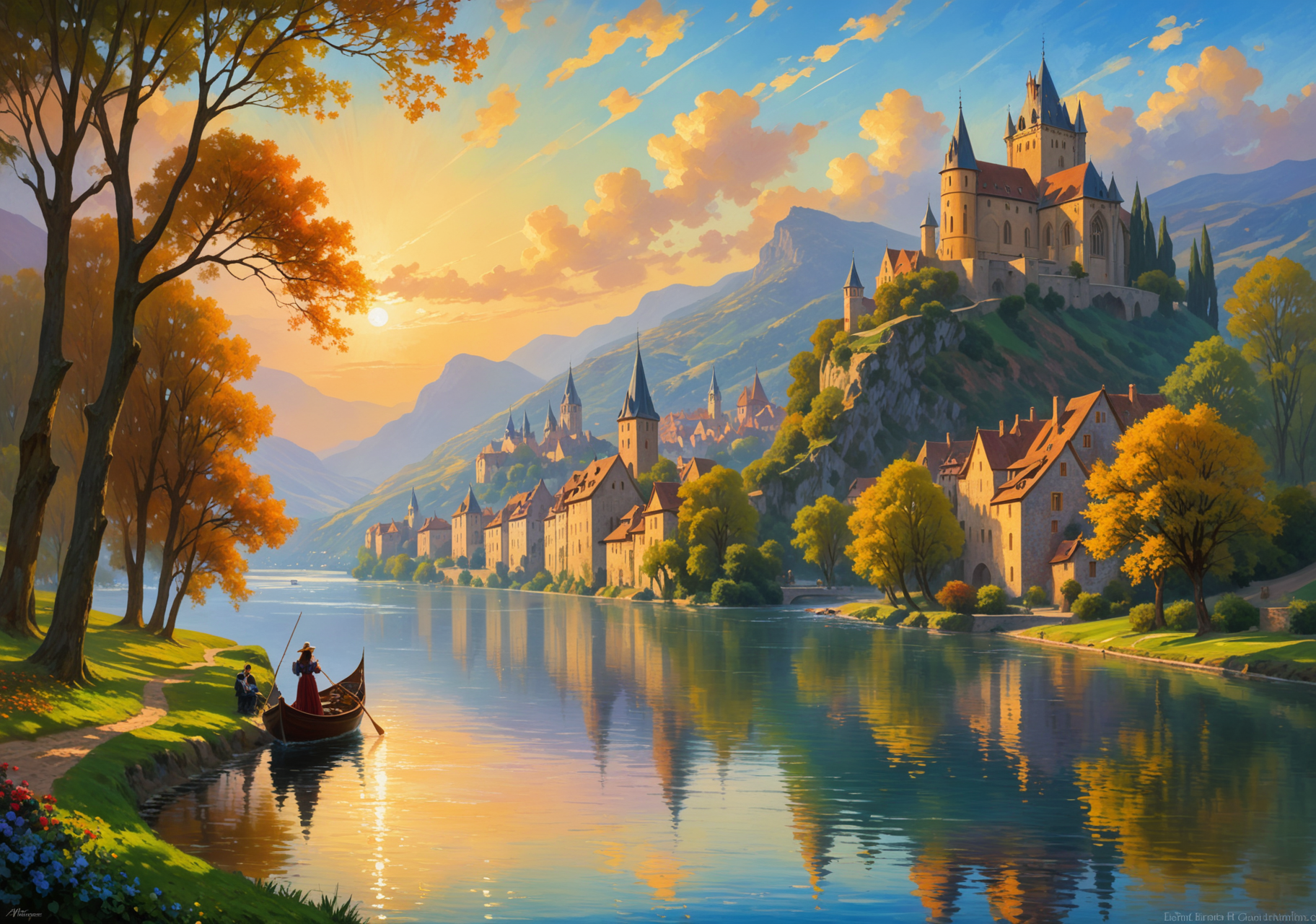 ethereal fantasy concept art of A digital art illustration of medivel, river scene, rhine, lorelei, by evgeny lushpin and daniel f gerhartz and claude monet and leonid afremov. . magnificent, celestial, ethereal, painterly, epic, majestic, magical, fantasy art, cover art, dreamy