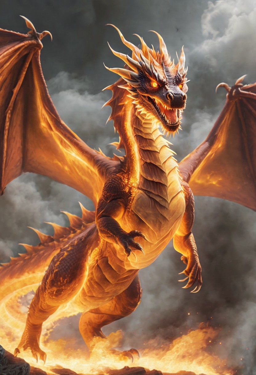 upscale, a fire dragon, body made of fire, massive gigantic fire dragon, fierce, roaring, looking at the viewer, hyperrealistic, fantasy, flying around, angry, highly detailed body, super realistic, hi_res, absurd detailed, very detailed face, detailed wings,