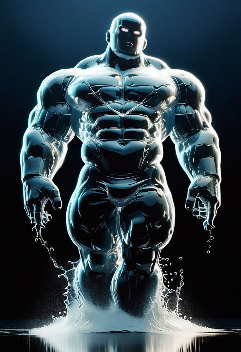 ,score_9, score_8_up, score_7_up,<lora:brawl_style_1_2_R:0.8>, 1boy, brawl, bodybuildingsex, bodybuilding, massive pectoral, beefy muscle, thick legs, open button,, large pectoral, black man, male water elemental, water01, watce, nonhuman