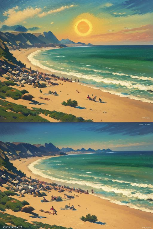 (impressionist style:1.4), impressionist painting study of a beach with people in the distance, low contrast, background image,(Action Painting:1.3) john picacio