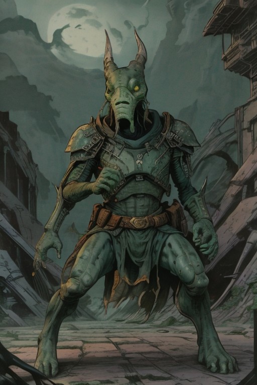 Comic style, action pose, heroic fighting pose, acid punk, punk smugller bounty hunter,(peleng)+++, alien, peleng horn, alien facial features, noseless, green skin, closeup, (NO MOUTH, mouthless:1.3), Trunk <lora:Keller_Experience:1.3> (best quality:1.5), sr2, epic scenery, realistic, RAW photo, dramatic photo,