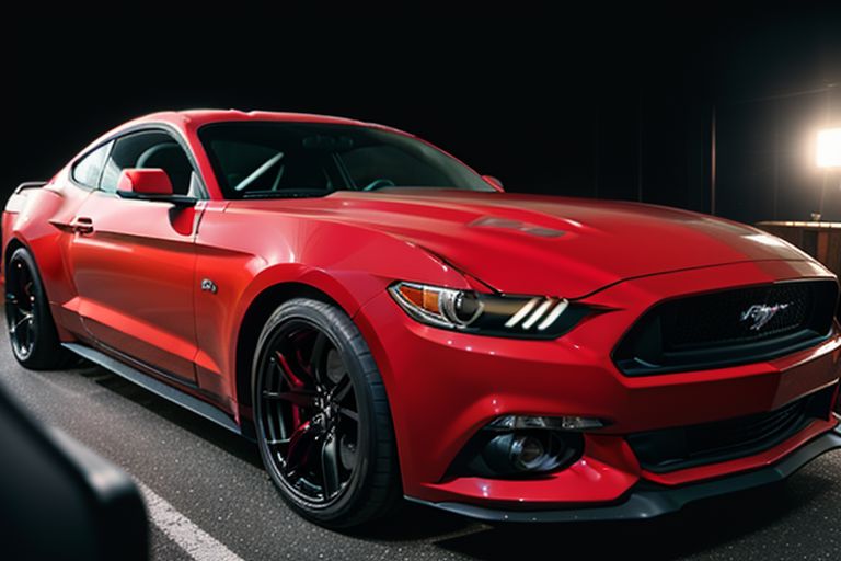 cars fantastic red, [ford mustang], speed, intricate detail ,dark background , HD. Photograph , in table((realism)), extremely high quality RAW photograph, ultra detailed photograph, sharp focus, high resolution, (detailed skin:1,3),high quality, film grain, Fujifilm XT3,Highly Detailed, movie, (Cinematic Photo:1.3) of (Realistic:1.3)