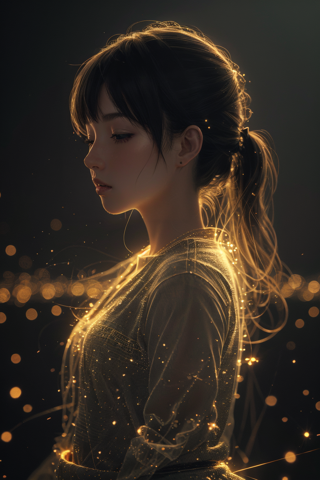 glow particle,1girl,solo,closed mouth,upper body,translucent fluorescent,optical flares,city background,(best quality),((masterpiece)),(highres),original,extremely detailed 8K wallpaper,(an extremely delicate and beautiful),