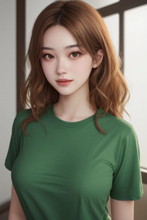 too cute to be true, 18 years old, score_9, score_8_up, score_8, 1girl, cute, excited, white skin, brown eyes, Seductive look, Green tshirt, medium breasts, one breast out, hold breasts,