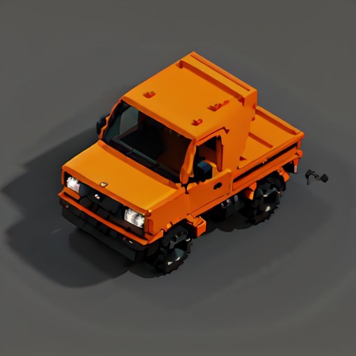 isometric voxel, isometric, voxel, ssambar, kei_truck, mini_truck, orange truck, isometric voxel, isometric, voxel