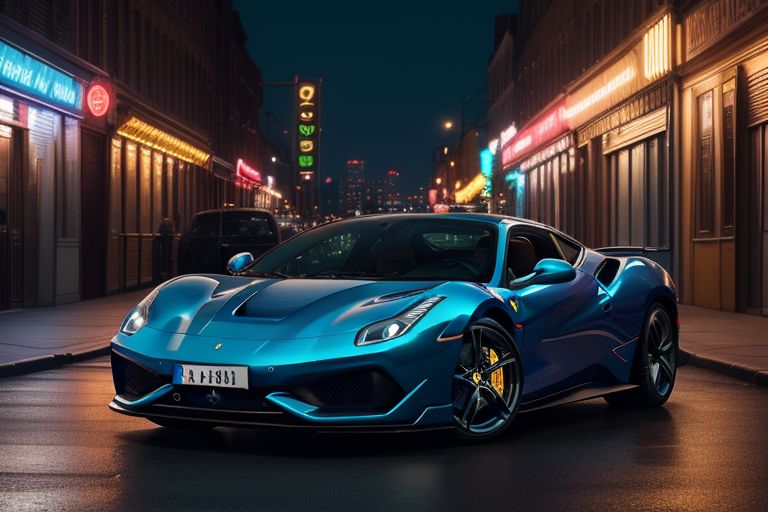 cars fantastic blue [Ferrari Lafarrari], speed, intricate detail ,neon city background, city background, night, HD. Photograph , in table((realism)), extremely high quality RAW photograph, ultra detailed photograph, sharp focus, high resolution, (detailed skin:1,3),high quality, film grain, Fujifilm XT3,Highly Detailed, movie, (Cinematic Photo:1.3) of (Realistic:1.3)