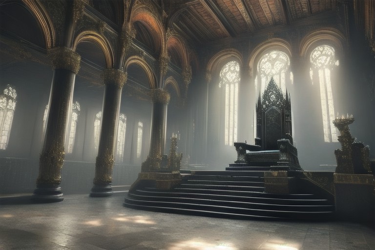 RAW photo, (masterpiece:1.3), subsurface scattering, heavy shadow, (high quality:1.4), (intricate, high detail:1.2), professional photography, HDR, High Dynamic Range, realistic, ultra realistic, photorealistic, high resolution, film photography, ambient lighting, atmospheric effects, <lora:detail_slider_v4:2>, OverallDetail, a long magnificent gothich hall, columns, at the far end there are stairs leading up to a high dais, on the dais there is an elaborate throne, throneroom, <lora:ThroneRoom-10:1>, epiCPhoto