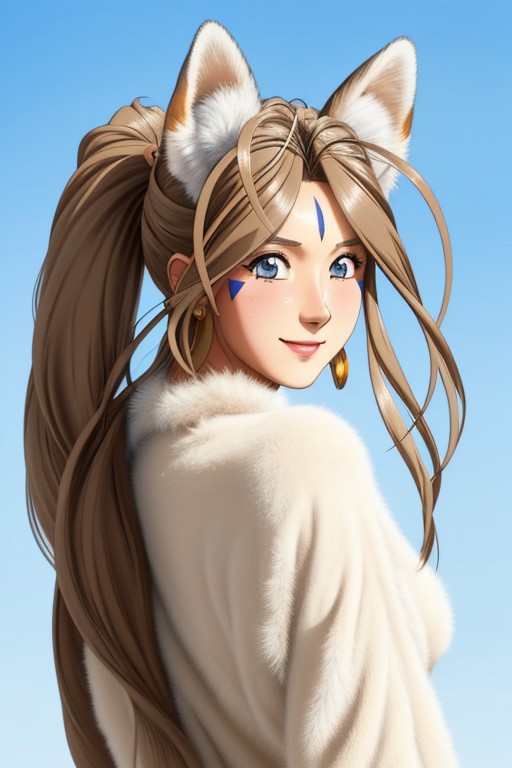 (masterpiece, best quality),8k RAW, beautiful mature, anime style kemono, detailed beautiful kind (((mature))) face, long anime style face, mature fox woman, best quality, ultra high res, sexy, soft focus, (photorealistic:1.4), 1girl, solo, <lora:Belldandy:0.5>(((belldandy as a fox woman with long fox ears golden eyes))), (((light brown body fur, two tone body fur))), (((with fox tail))), (((cheek fur))), (((cheek fluff, cheek fur fluff))),(((with body fur, brown two tone body fur))), with animal ears(((long fox ears))), with animal nose,, brown hair, white one piece dress with lots of beautiful frills, goddess,big angel wingS, long_hair, facial_mark, forehead_mark, blue_eyes, jewelry, brown_hair, smile, large_breasts, earrings, choker, bracelet, antenna_hair, blush, ponytail, huge_breasts, bangle, <lora:povFacesitting_v10:0.4>from below, open legs, dance in the sky