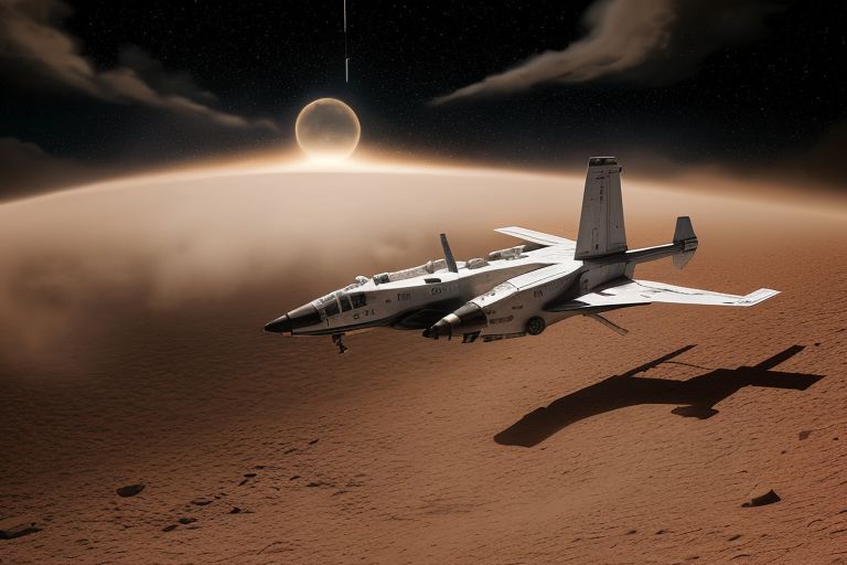 in orbit around a red desert exoplanet, in cockpit view of spaceship, dark space with some stars in front, only 1 planet visible, see small ships and a space station in the distance, ((sexy blonde copilot)), dust storm on planet