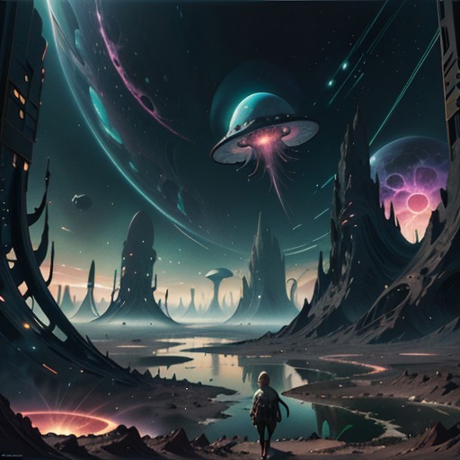 best quality, masterpiece, realistic, photorealistic, 1girl, solo, alienscape, otherscape, city street, noon, neon theme, glowing, starry sky <lora:Alienscape:1.0> detailed background, night, light, rain BREAK outdoors, twilight, raytracing <lora:add_detail:1>