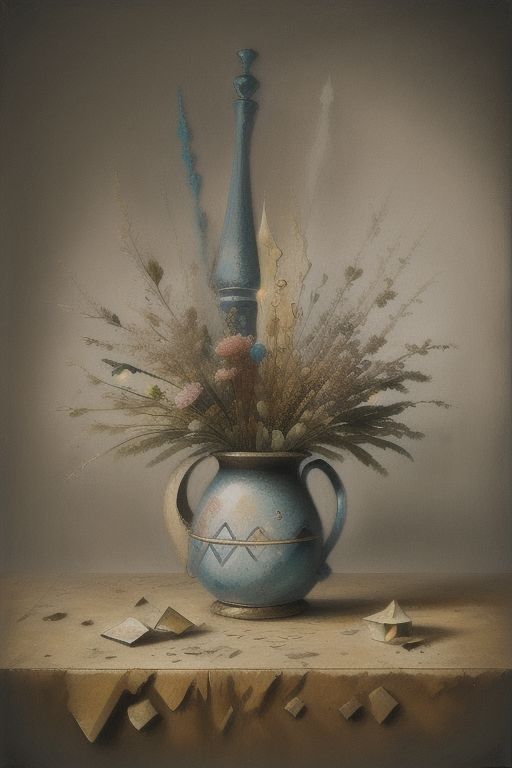 Still life in the Dutch Baroque style with elements of cubism by Picasso and textures in the grunge style