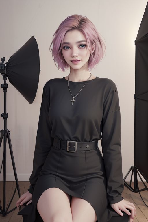 (masterpiece:1.25), (best quality:1.25), (sunlight:1.25), (rim lighting:1.25), (cinematic lighting:1.4), (hires:1.25), (high resolution:1.1), (realistic:1.1), (highres:1.1), (Volumetric lighting:1.1), (:), (30 years old woman:1.25), (fit:1.25), (slim:1.25), (seated:1.25) , (Smiling:1.3), (pink hair:1.15), (cowboy shot:1.15) , (beautiful medium boobs:1.2), (beautiful little nipples:1.18), (breastsout:1.2), (pussy:1.2), (pubic hair:1.2), (naked:1.3), (Statement high heels:1.15), (Bold fashion makeup:1.35), (Dramatic eye shadow:1.25), (Sleek, styled hair:1.2), (Manicured nails:1.15), (Layered necklaces:1.3), (photography studio:1.35), (Seamless blue backdrop:1.2), (High-key lighting setup:1.15), (Softbox lights:1.25), (Beauty dish for soft light:1.15), (Reflectors and diffusers:1.15), (Multiple camera lenses:1.15), (Tripod and camera rig:1.35), (Gelled lights for color effects:1), (fashion poster:1.25), (Clothing rack with designer outfits:1.15), (Stylist table with accessories:1.25), <lora:add_detail:1>, <lora:breastsout24_rvkwi:0.85>, jill_re, tan lines