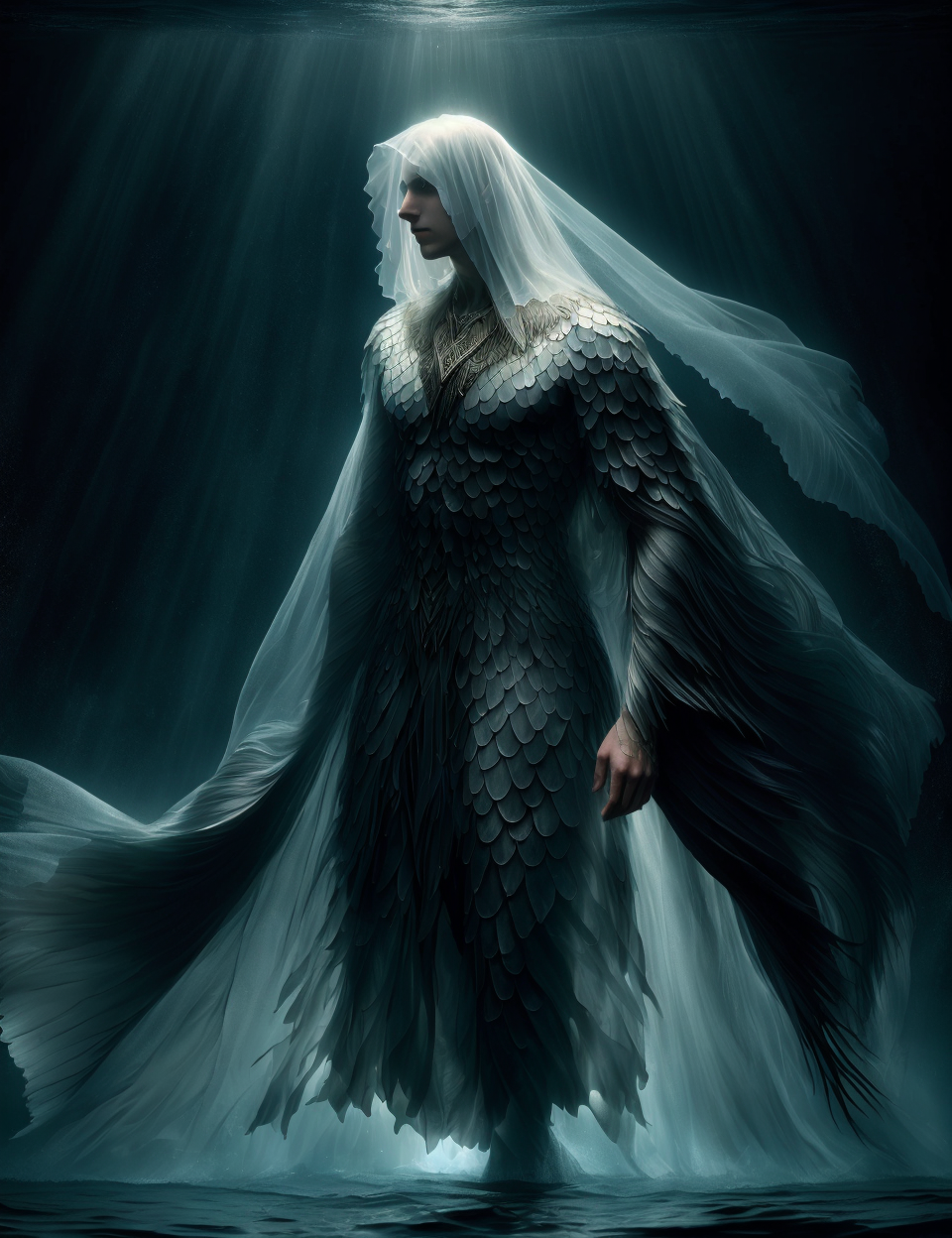 DonMF15hy, male druid, healing waters dark magic floating amorphous shadow veils, deeper and darker than night, absorbing light and hope, red eyes flicker within, sinister grace, leaving a feeling of unease and dread, <lora:DonMF15hy:0.8>