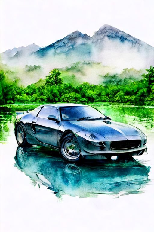 (((award winning photo))) of A car with big_tires (bottom view), cinematic foto, water, (masterpiece, best quality), (sharp focus:1.2), watercolor, (photorealistic illustration), (intricate details), unity 8k wallpaper, ultra detailed,