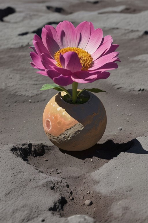 (masterpiece:1.2), (Photo of a lone futursitic entity, their spacesuit reflecting the nebulae and distant galaxies, on the edge of a crater on a desolate moon, A lone flower, a vibrant splash of color against the grey landscape grows from a crack in the rock:1.1), (art by Otomo Katsuhiro:1.4), (close-up shot:1.1), (hyperdetailed:1.1), (intricate details:1.0), (Refined details:1.1), (best quality:1.1), (high resolution:1.2)