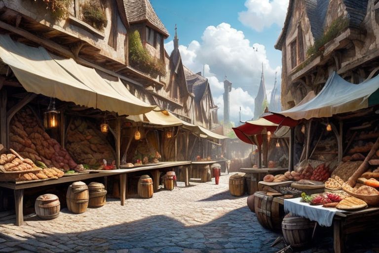 RAW photo, (masterpiece:1.3), subsurface scattering, heavy shadow, (high quality:1.4), (intricate, high detail:1.2), professional color photography, HDR, High Dynamic Range, realistic, ultra realistic, photorealistic, high resolution, film photography, ambient lighting, atmospheric effects, <lora:detail_slider_v4:2>, OverallDetail, <lora:FantasyMarket:1>, fanmar, armor, barrel, basket, blurry, bread, closed eyes, cloud, day, fanmar, fruit, holding sword, knife, multiple girls, outdoors, pavement, robe, scenery, sword, table, watercraft, epiCPhoto