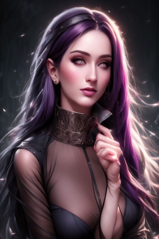 A woman with Roxo hair and a black blouse looks at the camera, Beautiful picture of the character, character portrait, character portrait, 🤤 Charlie Bowater character art, epic portrait illustration, подробный character portrait, neo-artcore and Charlie Bowater, high quality portrait, fantasy concept art portrait, detailed matte fantasy portrait, charlie bowater art style, Detailed beautiful portrait, fantasy art portrait, hi
