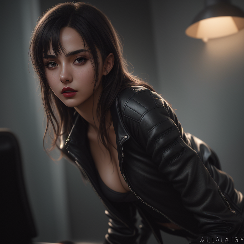 ((Helga Lovekaty in a sexy biker outfit) ), (((alluring, seductive, sensual) )), (smokey eyes makeup and lipstick) , ultra realistic face, extremely detailed, extremely detailed eyes, extremely detailed body, extremely detailed skin , ultra detailed, 8k, photograph, (8k, high resolution, uhd, full resolution, hyperrealistic, raw photo) , cinematic style, strong colors, high detail, cinematic shot, Realistic, ultra detailed, photography, photorealism, cinematic rendering, highest quality, highest detail, incredibly detailed, sharpen, professional lighting, photography lighting, ultra detailed, Realistic anime art style, combines anime aesthetics with lifelike details, detailed character designs, intricate backgrounds, immersive storytelling