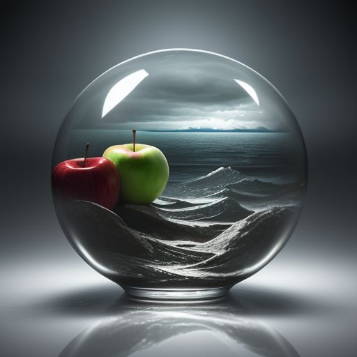 lovely double exposure image by blending together a stormy sea and a glass apple. The sea should serve as the underlying backdrop, with its details subtly incorporated into the glossy glass apple, sharp focus, double exposure, glossy glass apple, (translucent glass figure of an apple) (sea inside) lifeless, dead, glass apple, earthy colors, decadence, intricate design, hyper realistic, high definition, extremely detailed, dark softbox image, raytracing, cinematic, HDR, photorealistic (double exposure:1.1)
