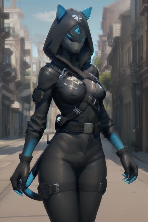 woman, mask, black leather outfit, cat woman, blue eyes, blue ears, 4k, no blur