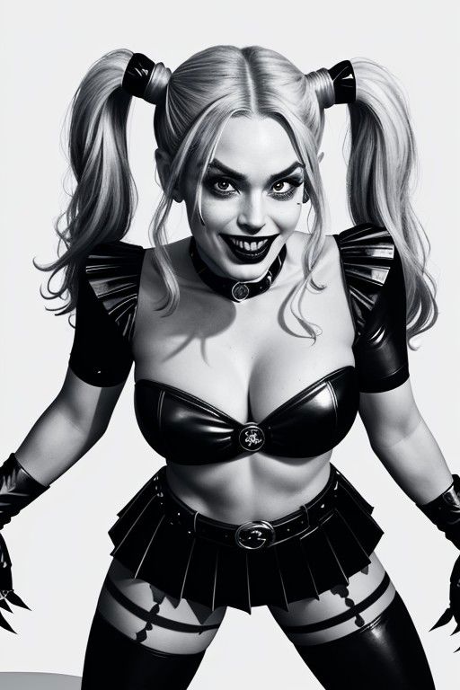<lora:wrestlers:0.7> harley quinn towering over me, standing very tall, (((from below, very low perspective))), (dominant pose), looking at viewer, (eye contact), holding handcuffs with one finger, pigtails, black and red outfit, arm wraps, black lips, evil dominant laugh, cowboy shot, fighting ring background, solo, masterpiece, high resolution, hd, 8k, shallow depth of field
