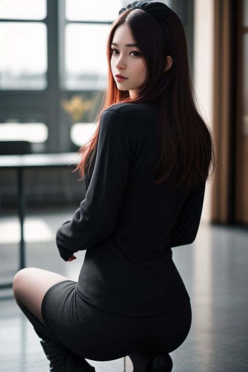 score_9, score_8_up, score_7_up,film photography, 35mm vintage photo,A 19-year-old cute ginger girl,wavy long hair, eye contact to viewer,Beautiful face shape, long eyelashes,gigantic breasts, cleavage,,hair shiny - glow, future0621,Black bra,Black panties,junj11t0,(black_bodystocking:1.15),maid headdress,belly,high heels,ruanyi0649,(Red theme:0.4),pole dancing background, from behind,nice ass, Squat deeply, best quality, masterpiece, realistic,hyper-detailed,blurry background, blurry foreground, depth of field,