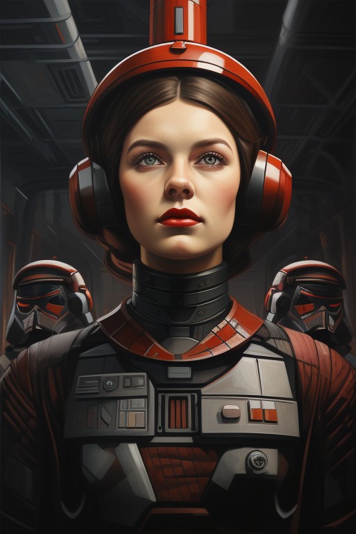 masterpiece,best quality,<lora:tbh262-:0.8>,illustration,style of soviet, portrait of star wars robots