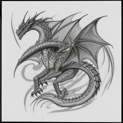 Sketch of a dragon. Amateur. Rough lines. White background.